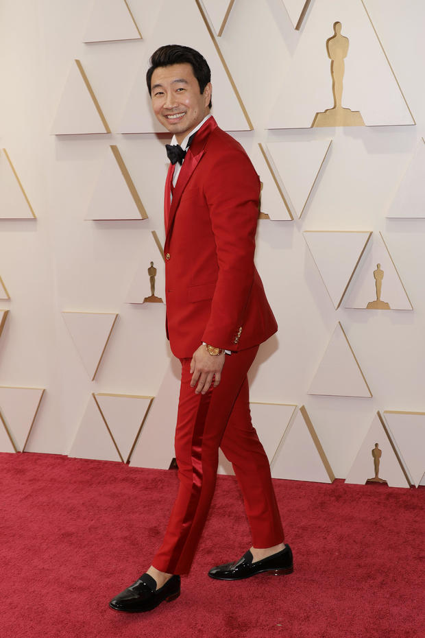 劉思慕在奧斯卡頒獎典禮上這套紅色西裝來自 Atelier Versace 2022春夏高級訂製服,感覺是法力高強的魔術師(把衣服變不見?),他怎麼樣我都可以![]()