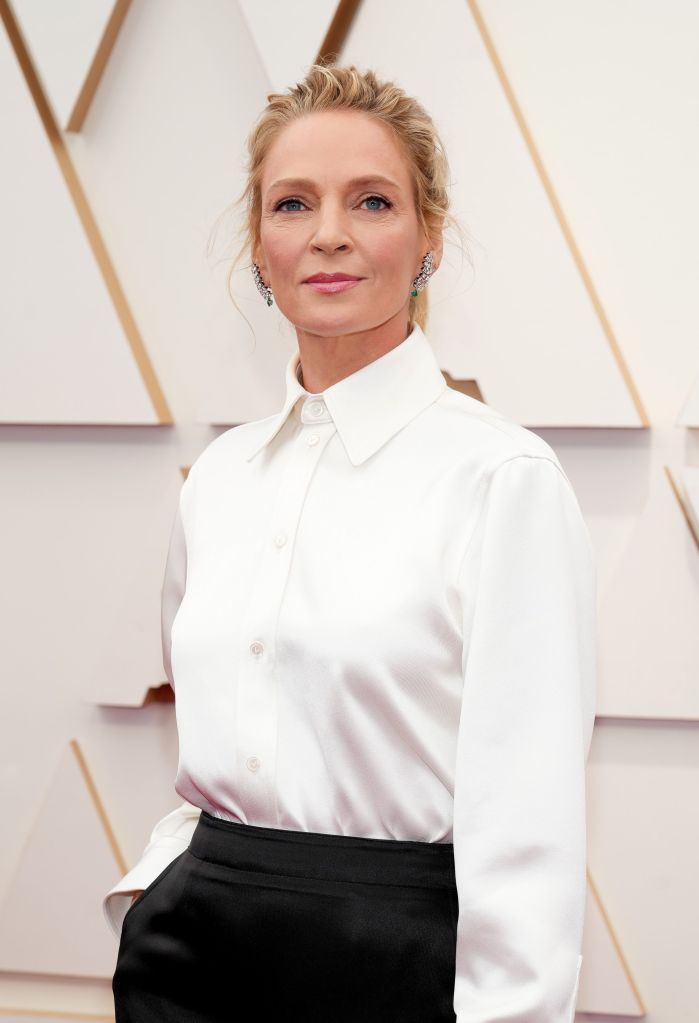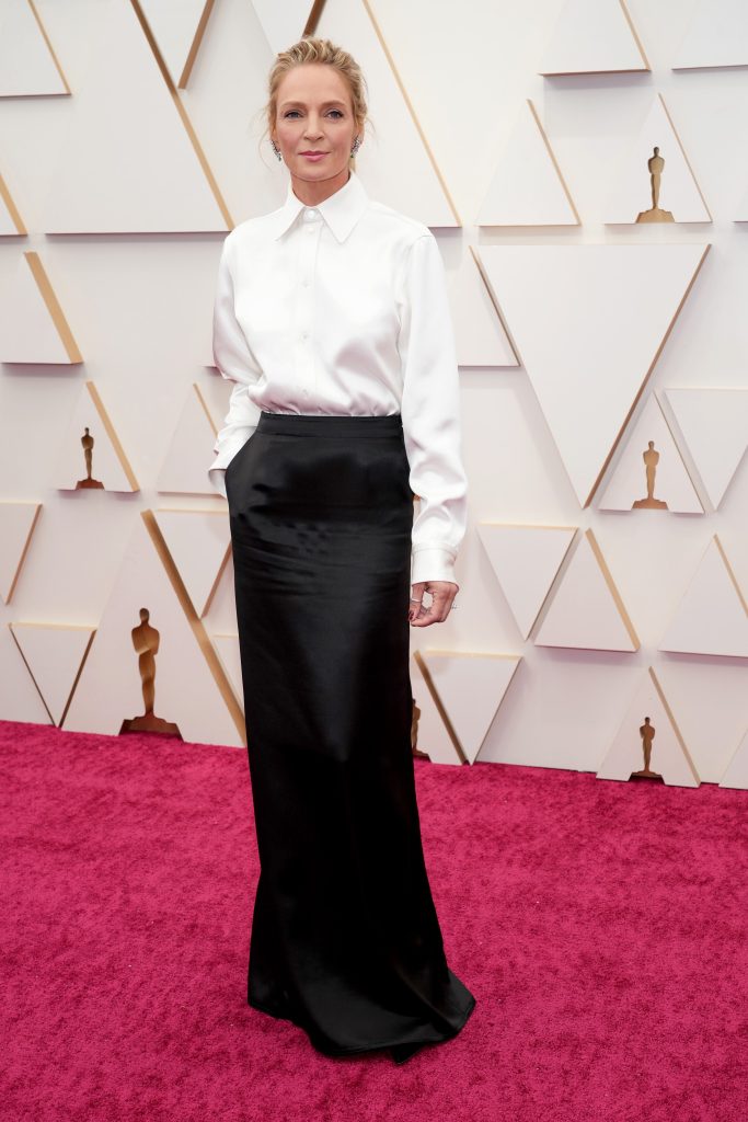 Uma Thurman 選擇簡單優雅的黑白配出席奧斯卡獎,這套來自 Bottega Veneta ,在禮服海中顯得相當出眾,不知道多個項鍊會不會更奧斯卡一點?